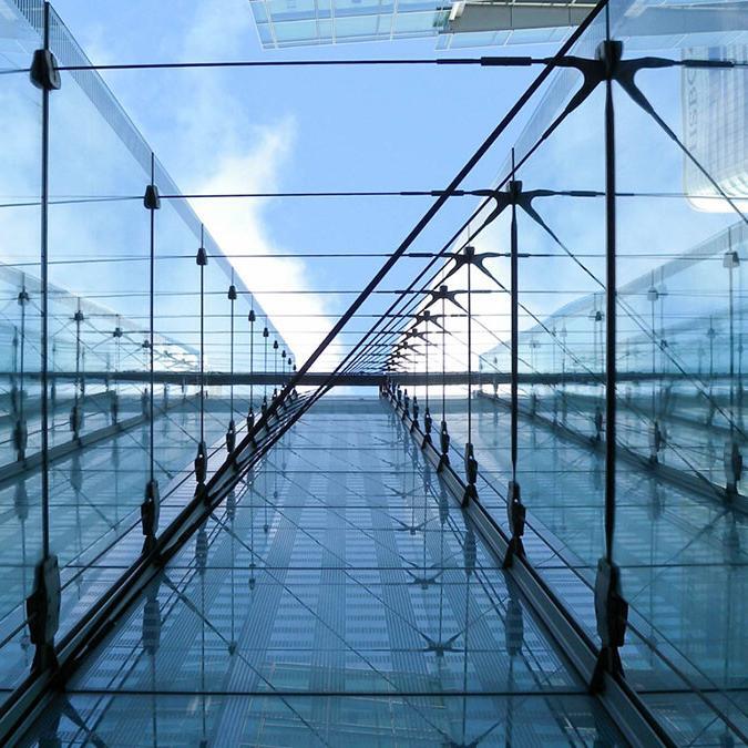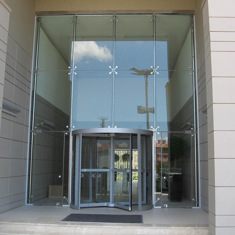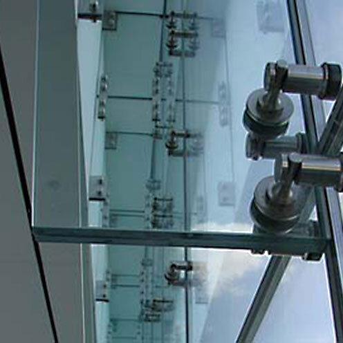 Bina projesine uygun, paslanmaz çelik konstrüksiyondan, karkas yapılması ve camların kenarlarından delinerek çelik rotiller ile taşıyıcı karkasa bağlanması ile yapılır.